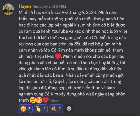 - Các lớp học chi phí thấp – chất lượng cao giúp các anh chị em có thể tự tin quản lý rủi ro cho account và tự trade để tạo Tự Do Tài Chính & Thu Nhập Thụ Động