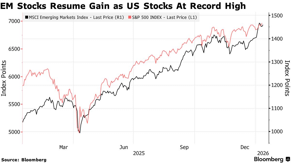 Các chuyên gia nhận định cổ phiếu thị trường mới nổi có thể tiếp tục hoạt động tích cực trong năm nay, do tỷ trọng đầu tư toàn cầu vào nhóm tài sản này vẫn ở mức thấp. Điều này giúp dư địa tăng trưởng còn lớn, ngay cả khi thị trường Mỹ vẫn duy trì vị thế thống trị.