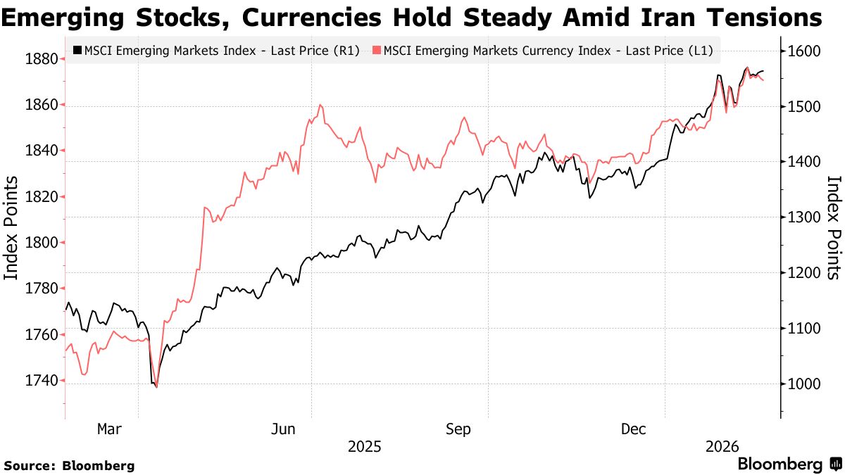 Hầu hết các chiến lược gia không kỳ vọng căng thẳng Mỹ-Iran sẽ leo thang thành xung đột toàn diện, nhờ đó các động lực cơ bản của thị trường mới nổi vẫn được duy trì. Dòng tiền chảy vào cổ phiếu công nghệ và sự ổn định tương đối của các đồng tiền chủ chốt tạo ra môi trường giao dịch thận trọng nhưng không gây ra hỗn loạn lớn.