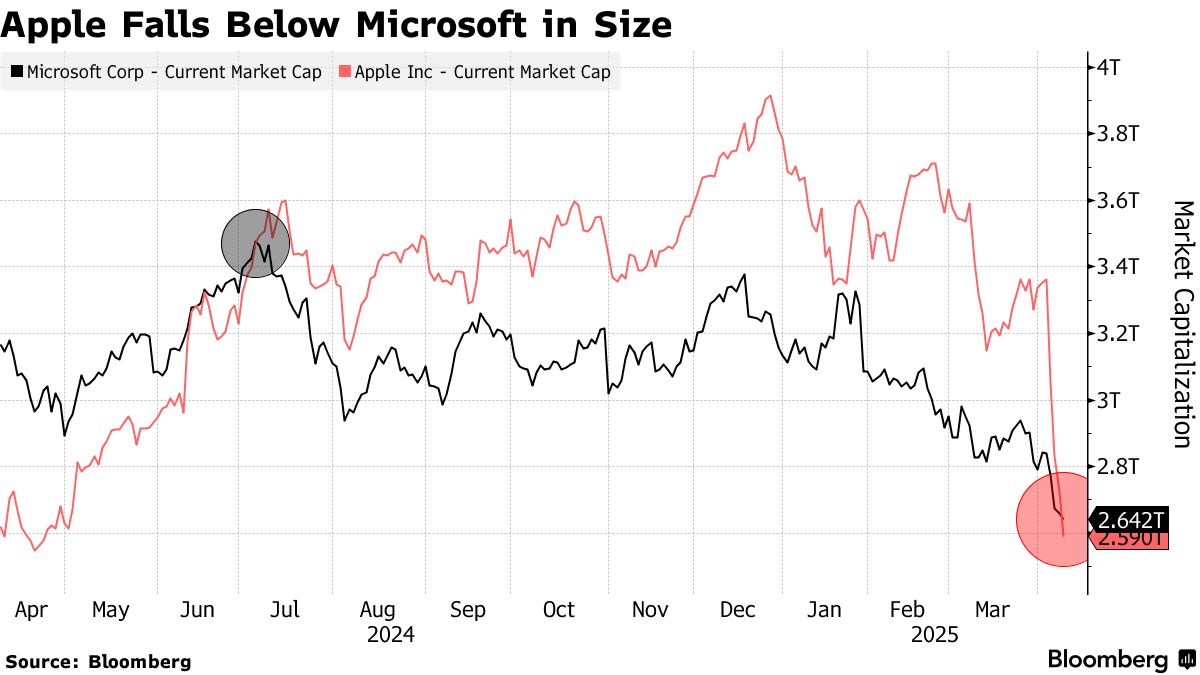 Cổ phiếu Apple đã giảm mạnh trong khi Microsoft trở thành công ty lớn nhất thế giới về vốn hóa thị trường. Sự thay đổi này phản ánh sự tác động của chính sách thuế quan và môi trường pháp lý đối với ngành công nghệ, khiến các nhà đầu tư phải điều chỉnh chiến lược đầu tư.