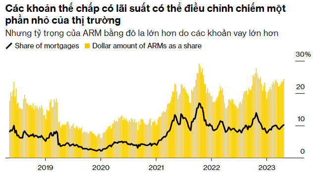 Một nhóm nhỏ nhưng giàu có của người Mỹ sắp chứng kiến khoản thanh toán thế chấp của họ tăng vọt. Họ là hơn 1,7 triệu chủ sở hữu những ngôi nhà được mua từ năm 2019 với khoản thế chấp có lãi suất điều chỉnh (ARM). Những khoản vay này, trung bình khoảng 1 triệu USD, đã được ấn định ở mức lãi suất thấp hơn lãi suất 30 năm hiện hành trong vài năm đầu, sau đó điều chỉnh dựa trên chi phí vay hiện tại.