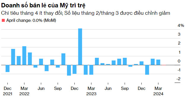 Chi tiêu tháng 4 ít thay đổi và số liệu tháng 2 và tháng 3 được điều chỉnh giảm, cho thấy xu hướng chi tiêu trong quý hai đang giảm so với những năm phát triển hậu Covid.