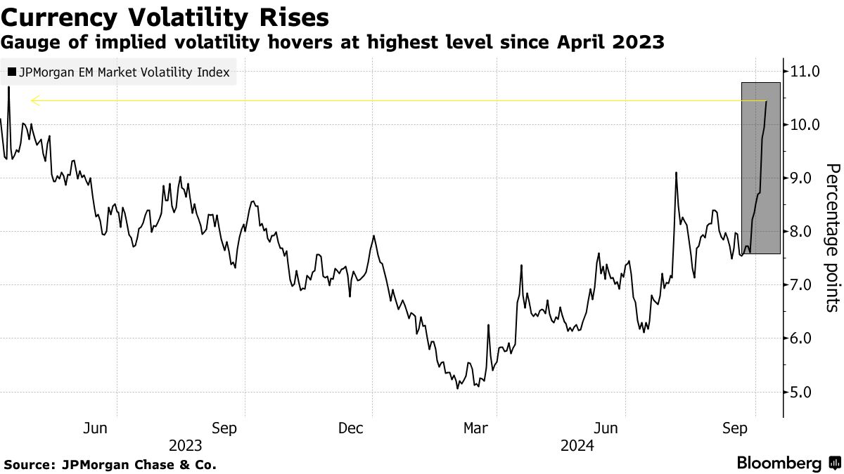 Điều này có thể gây thêm biến động cho đồng tiền của các quốc gia đang phát triển và tác động không nhỏ đến chứng khoán Mỹ. Biến động tiền tệ trên các thị trường mới nổi đã tăng lên mức cao nhất kể từ tháng 5 năm 2023, tạo ra khoảng cách lớn so với các quốc gia phát triển.